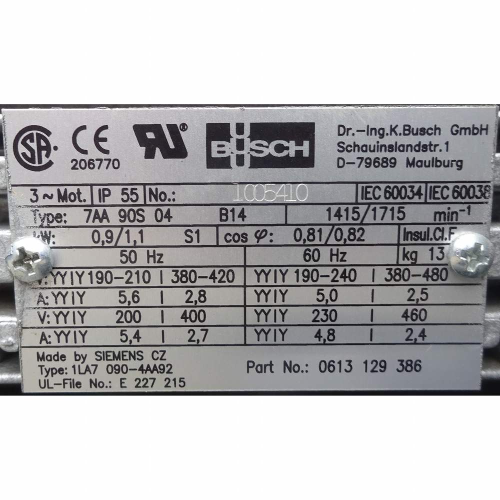 真空ポンプ 中古 BUSCH RA0025.E503.1002 0.9kW/1.1kW 『品番8226』