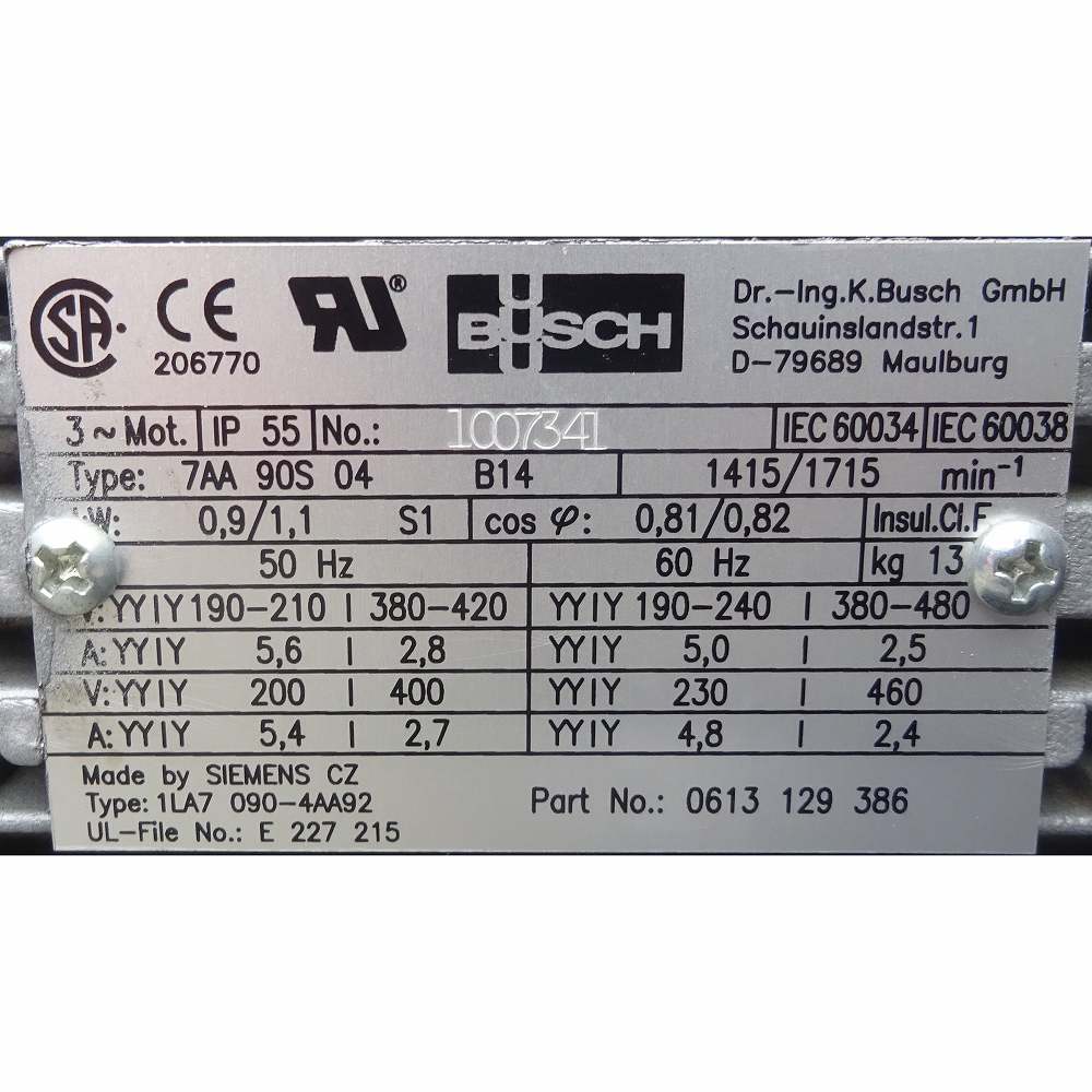 真空ポンプ 中古 BUSCH RA0025.E503.1002 0.9kW/1.1kW 『品番8227』